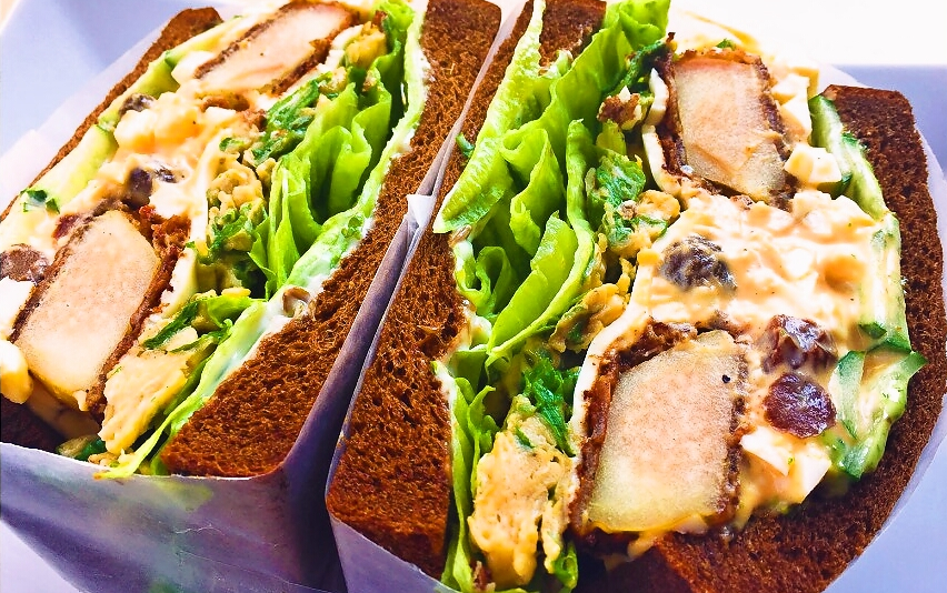 ●たっぷりタマゴサンドのりんごカツレツ入りクミン風味サンドイッチ