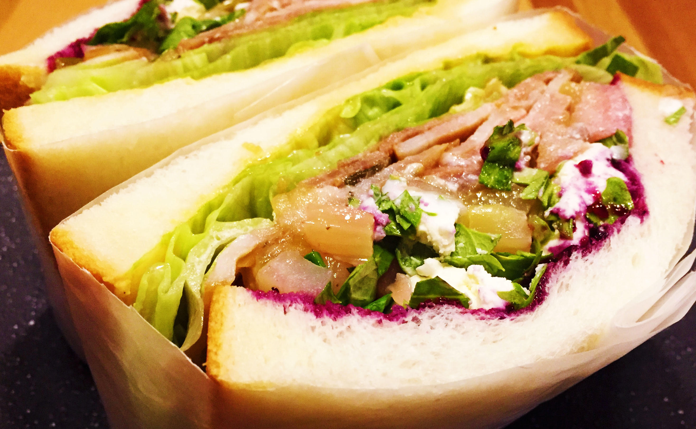 ●甘辛焼豚 冬テイスト-焼豚とブルーベリーのクリームチーズサンドイッチ